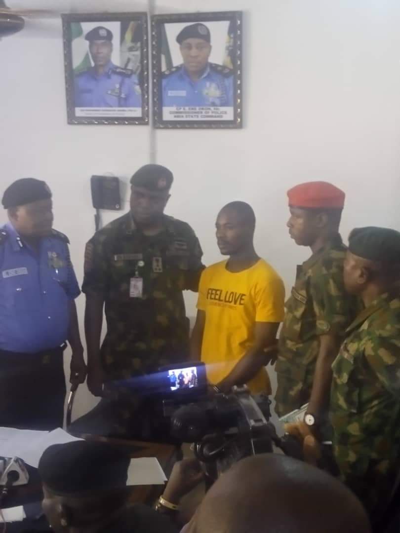 Yusuf stated that Johnson was handed over to the Abia State Police Commissioner Ene Okon in his office in Umuahia by the Commander of the 14 Brigade of the Nigeria Army based at Ohafia, Abia State, Brigadier General S. B. Kumakpayi.