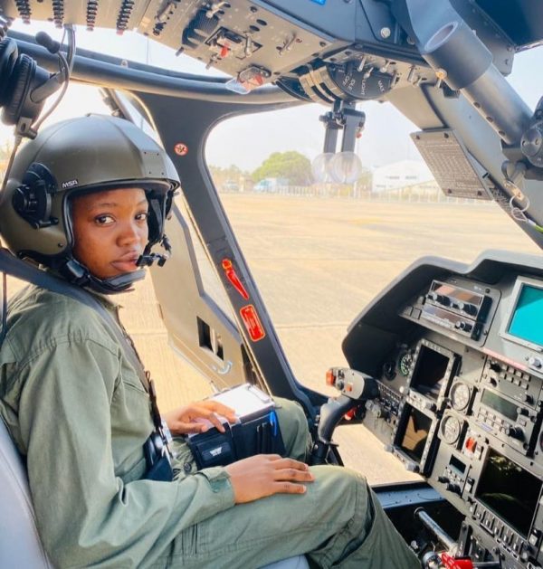 She holds a commercial pilot license and also underwent tactical flying training on the Agusta 109 Power Attack Helicopter in Italy. Incidentally, she introduced the newly acquired Agusta 109 Power Attack Helicopter to the President, Commander-in-Chief of the Armed Forces of Nigeria, President Muhammadu Buhari, during the induction ceremony at Eagle Square in Abuja on 6 February 2020.
