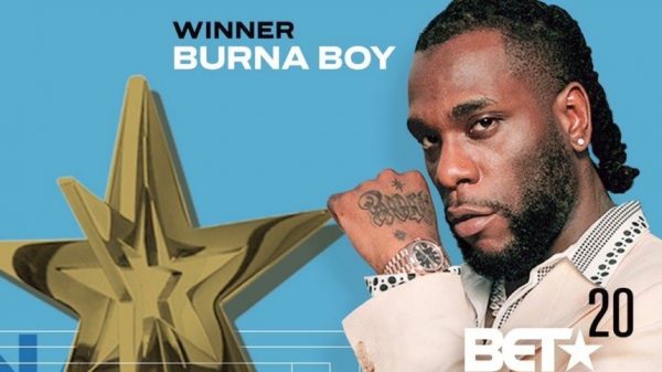 “Thank you very much BET, second time, I appreciate it,” an obviously excited Burna responded while receiving the award held virtually due to the coronavirus pandemic.
