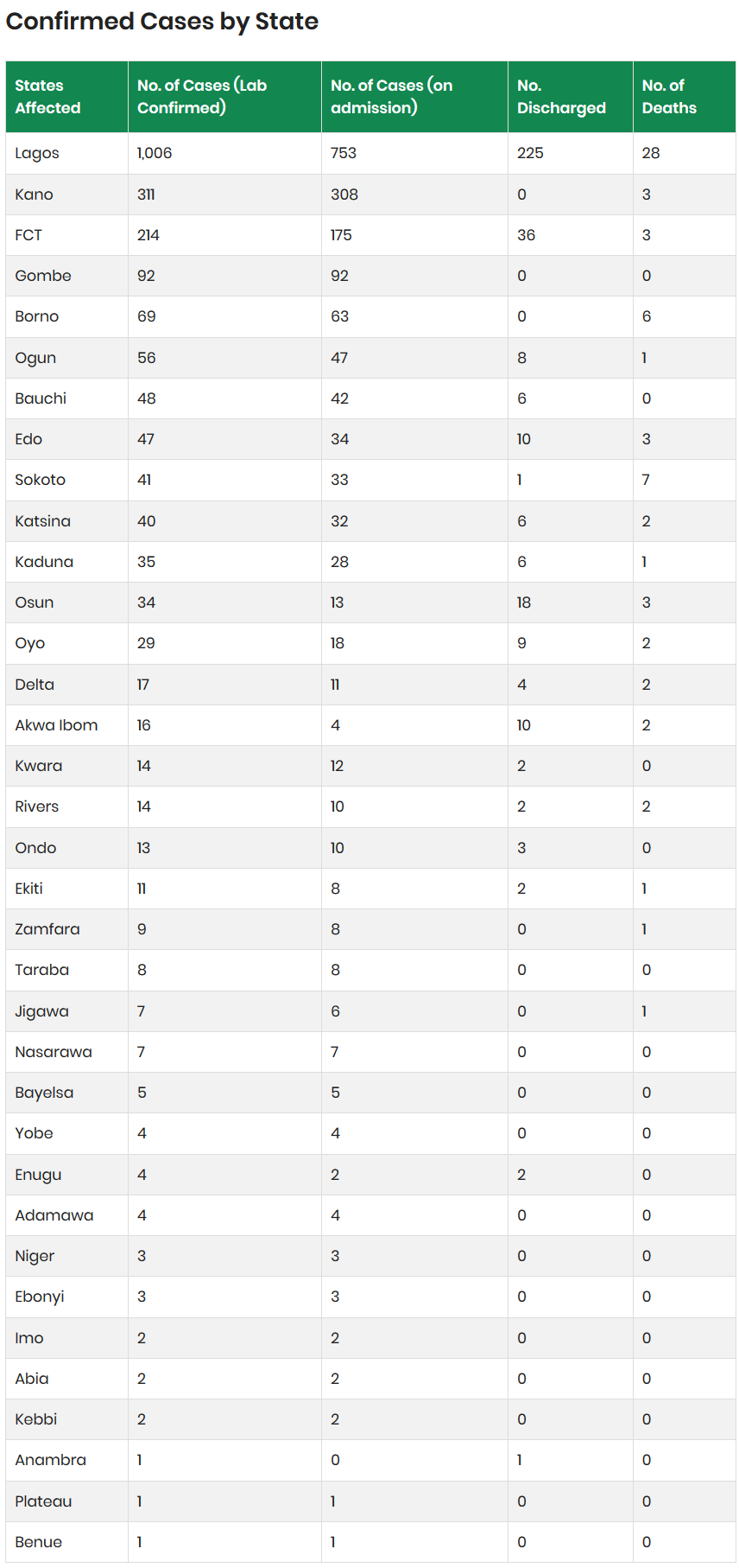 Till date, Nigeria has a total of 2,170 confirmed cases, 351 have been discharged while 68 deaths have been recorded in 34 states and the Federal Capital Territory.