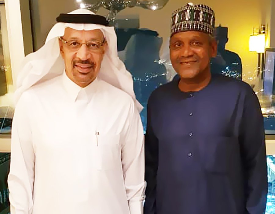 Minister of Energy, Industry and Mineral Resources, Saudi Arabia and Chairman of Saudi Aramco, Mr. Khalid A.Al-Falih, with the Group President/Chief Executive Dangote Group, Aliko Dangote, after a successful meeting on investment opportunities in Africa and collaboration between Dangote Refinery and Saudi Arabia oil ministry.