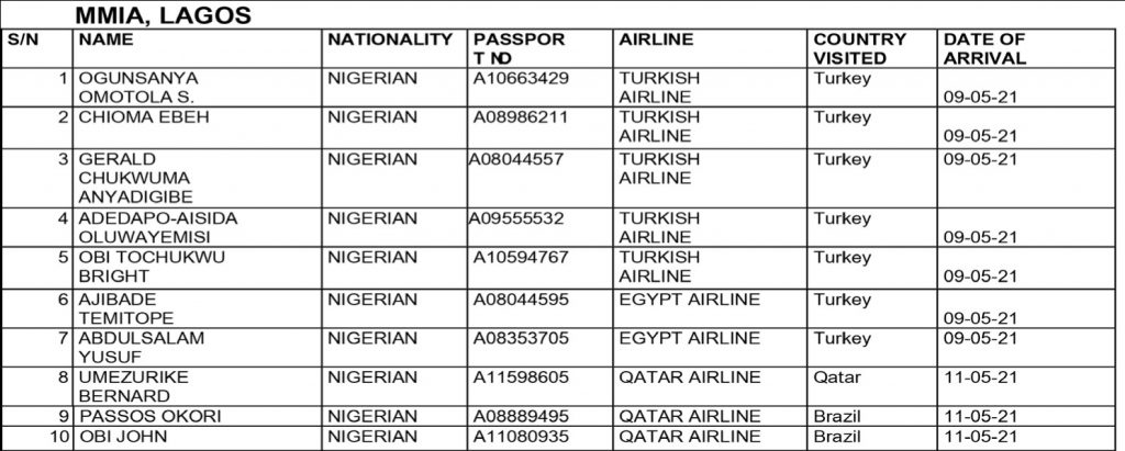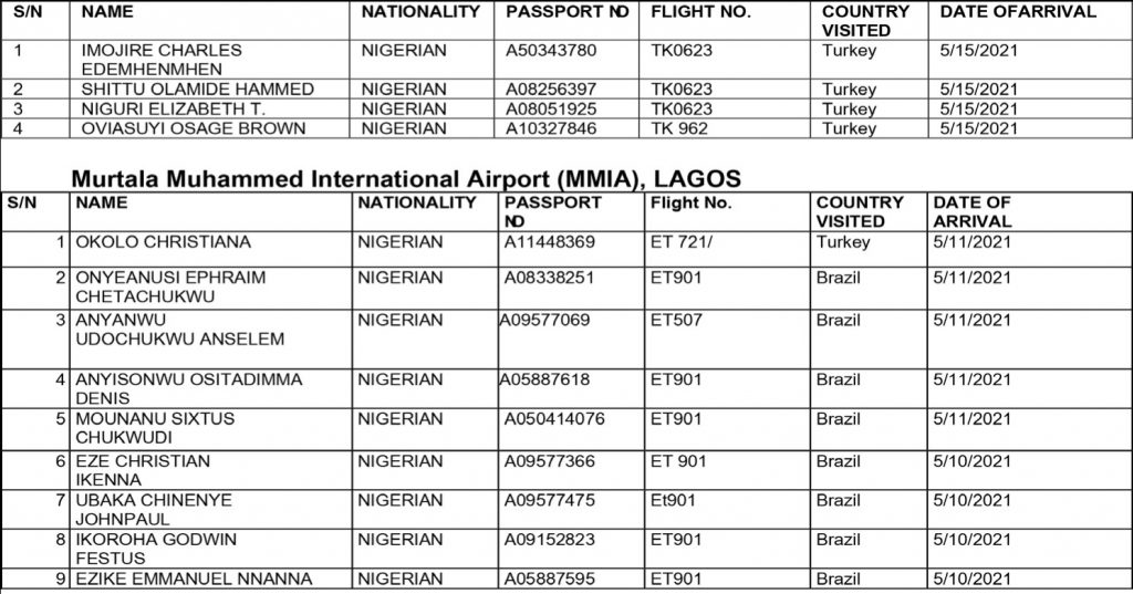 Below is the full list of 90 persons declared wanted by the Federal Government through the Presidential Steering Committee (PSC) on COVID-19 for violating the quarantine regulation as prescribed by the PSC.