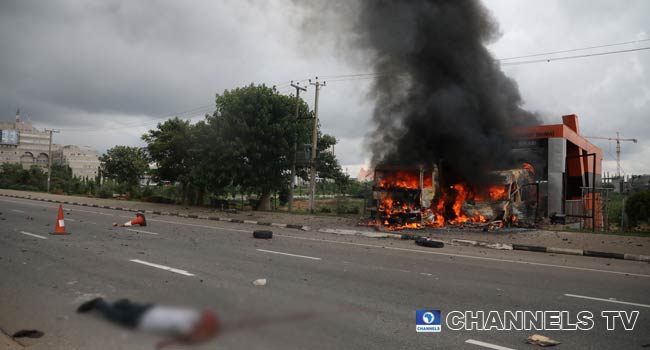 In the ensuing melee, sporadic gunshots were fired to disperse the protesters, while several vehicles reportedly belonging to the National Emergency Management Agency, NEMA, in the vicinity were set ablaze.