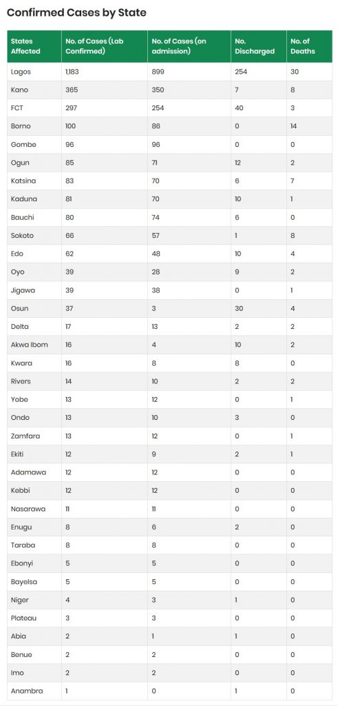Cross River and Kogi are the only states that have yet to record any case of the coronavirus disease.