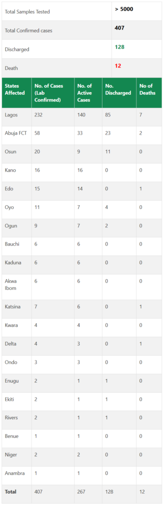 CASE SUMMARY IN NIGERIA AS AT APRIL 15TH 2020