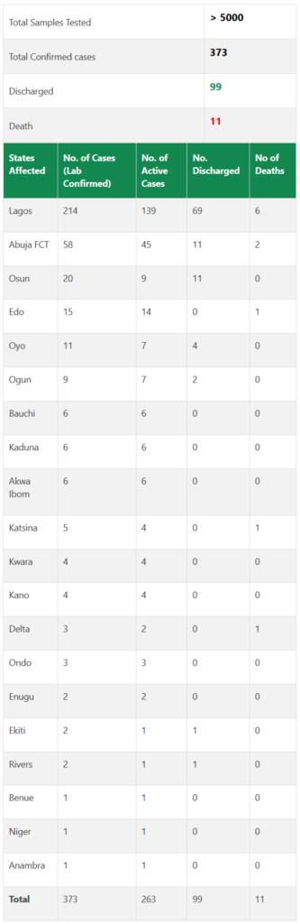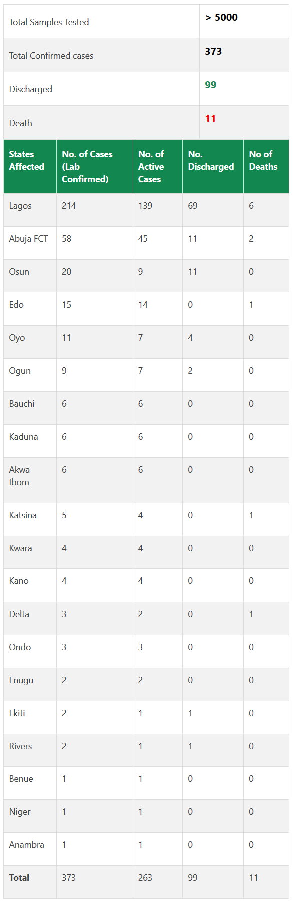 - Till date, 373 cases have been confirmed, 99 cases have been discharged and 11 deaths have been recorded.